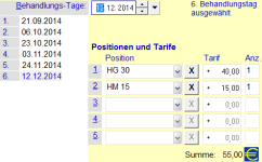 Eine andere Arbeitsweise ist, alle Leistungen eines Scheines in einem Zug einzugeben und anschließend sofort abzurechnen. Dazu gibt es Shortcuts, die ständig wiederkehrende Routinen vermeiden helfen.